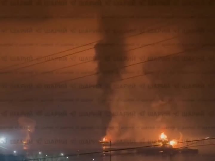 "Пабедата" дойде и в терминала за товарене на петрол Шешкарис в Цемеския залив на Новоросийск - Черно море. Кадрите са от тази нощ. Това е най-големият нефтен терминал в южната част на Руската федерация. Общият капацитет на резервоарите е около 1,3 милиона кубически метра. Москвичите искаха да се възползват от повишените цени на петрола, но украинците имат други планове.