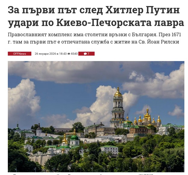 Киево-Печорската лавра е основана през XI век — столетие преди Москва изобщо да съществува. За първи път след Хитлер, тя отново е бомбардирана от армия, която се самообявява за „освободител“. Това е война не само срещу Украйна, а срещу историята, културата и самото християнство. За кагебиста няма нищо свещено — както и за неговите „православни“ талибани и там и тук.
