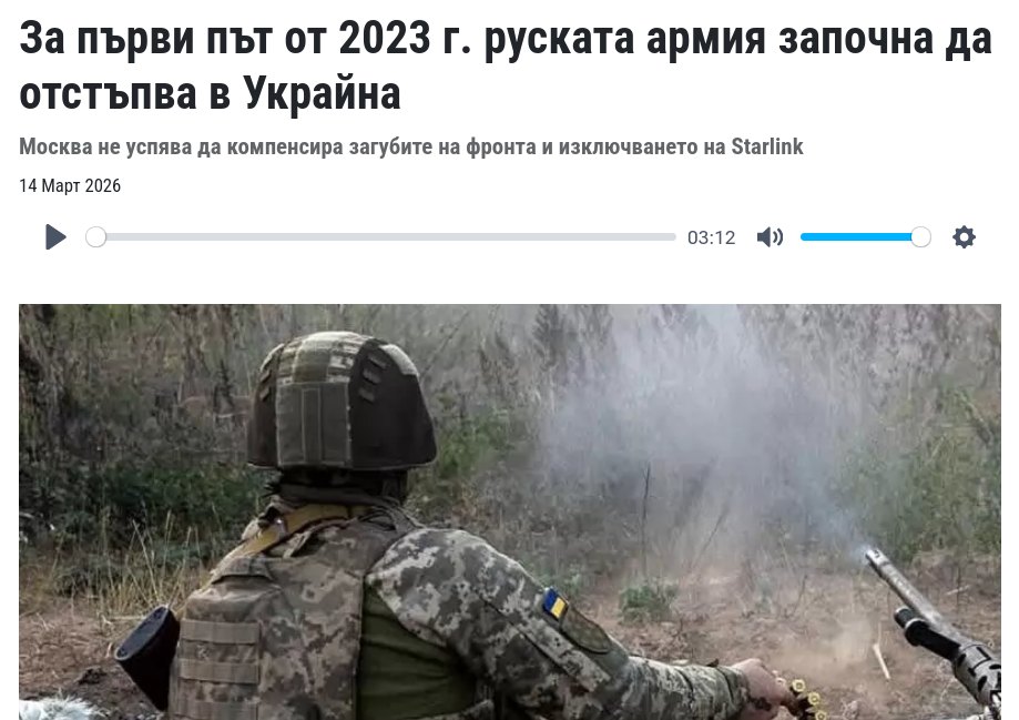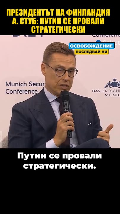 Президентът на Финландия А. Стуб: Путин се провали стратегически Няма да ви давам съвети [на Украйна], но мисля, че печелите тази война. И причината да казвам това е, че Путин се провали стратегически. Той искаше да направи Украйна руска, тя стана европейска. Той искаше да предотврати разширяването на НАТО, получи Финландия и Швеция.