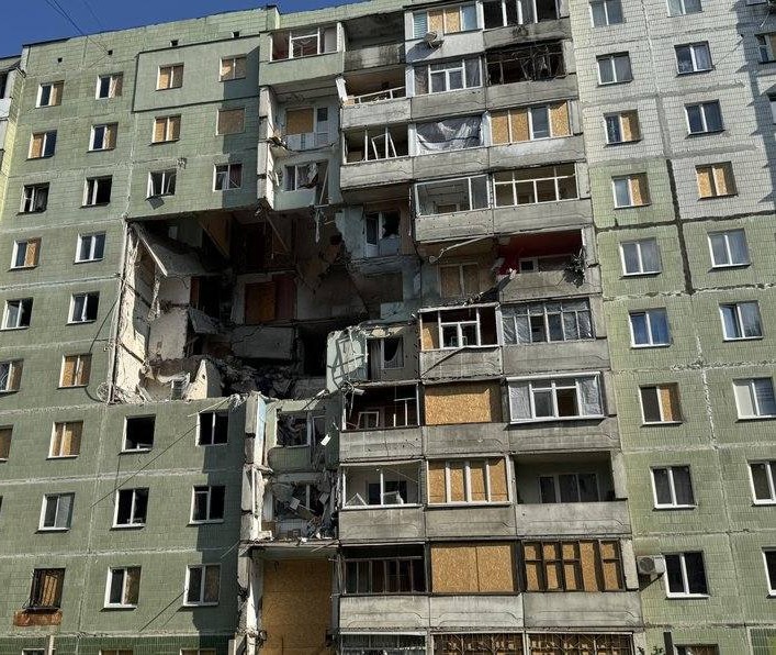 Суми, Украйна, вчера. Удар от дрон Шахед. Докато светът е вторачил поглед в Иран, Московията продължава кампанията си на чудовищни зверства срещу мирно население, срещу спящи в домовете си жени и деца.