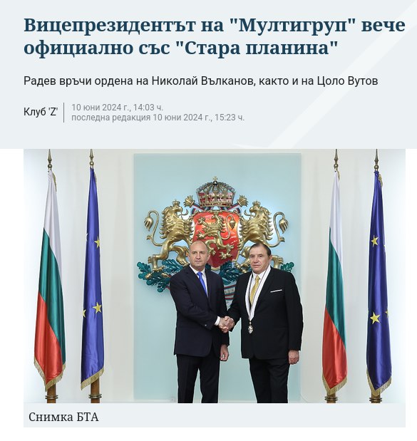 Най-високото държавно отличие в България - орден "Стара планина" загуби своя смисъл и девалвира рязко особено при двама президенти - агент Гоце и резидент БОТАШ. Негови титуляри много често са видни КГБ (филиал ДС) ченгета като Ахмед Доган, Тодор Батков, Петър Манджуков и др. Нерядко са награждавани и изтъкнати олигарси или ръководители на мутренско-ченгеджийски групировки като "Мултигруп".