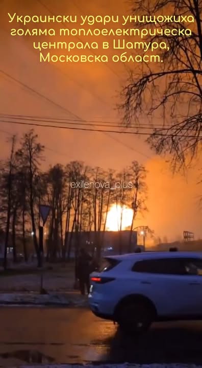 💥 Русия: Украински удари унищожиха голяма комбинирана топлоелектрическа централа в Шатура, Московска област. Една от най-старите централи в страната с капацитет 1500 MW. Най-малко 820 MW са изведени от строя - еквивалентно на потреблението на електроенергия от 1,5 милиона московчани. Близо 4 години след началото на тридневната "специална военна операция" настъпва времето, в което москвичите ще разберат на какво са подложени милиони украинци от години в студените зимни месеци.