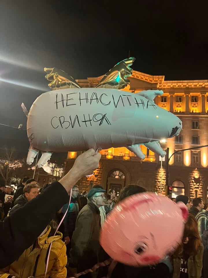Долу задкулисието на свинете, родено в утробата на КГБ (филиал ДС)! Снимката е от протеста "Свобода за политическите затворници" днес, организиран от ПП.